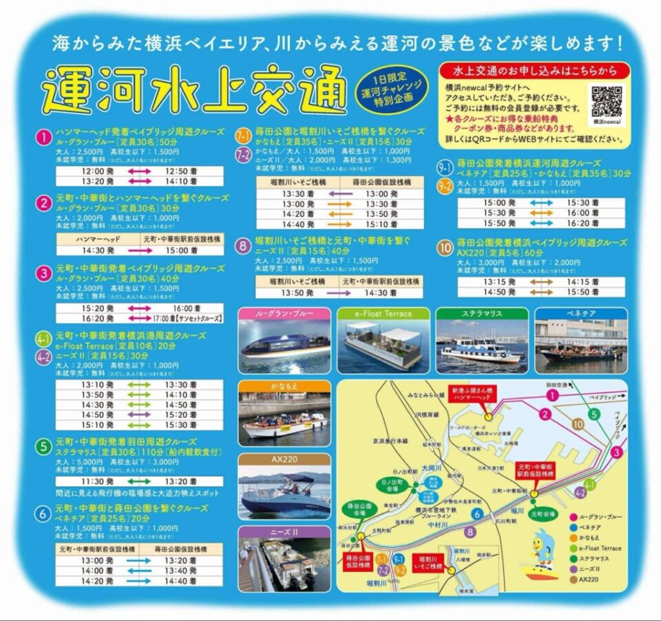 今年は、初めて『元町から羽田空港方面への周遊クルーズ』や『堀割川いそご桟橋を活用したクルーズ』『蒔田公園発着横浜港周遊クルーズ』も!  ※詳細は HP にて。