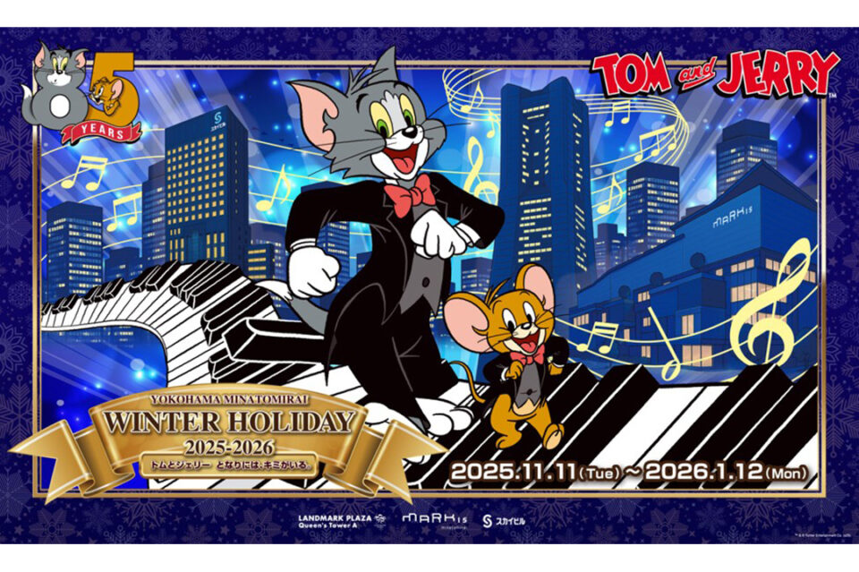 ランドマークプラザ・69階展望フロア「スカイガーデン」、MARK IS みなとみらい、スカイビルでは、2026年1月12日(月・祝)までの期間、今年85周年を迎えた「トムとジェリー」とともに、クリスマスからニューイヤーシーズンを盛り上げるホリデーイベント「YOKOHAMA MINATOMIRAI WINTER HOLIDAY 2025-2026」を開催!