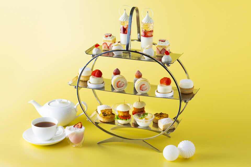 苺の魅力を心ゆくまで堪能できる8種のスイーツと旬の食材をふんだんに使用した3種のセイボリー!繊細で美しいフォルムと豊かな味わいを楽しんで!