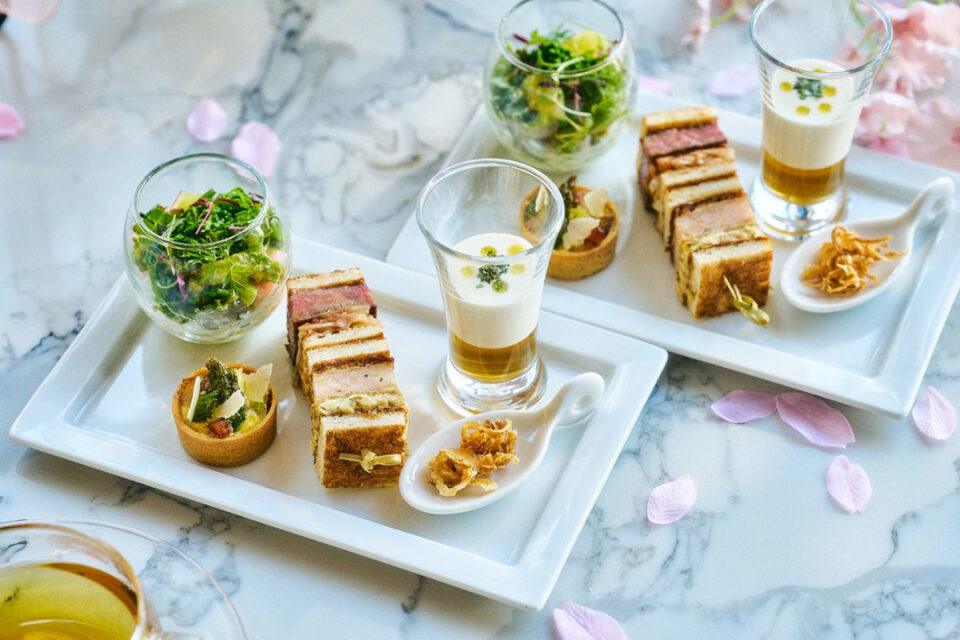 スペシャリティレストラン「Ocean Milano」のシェフが手掛けるセイボリー。みずみずしい春野菜と魚介を合わせたサラダや、新玉葱のヴルーテなど、季節の移り変わりを感じる絶品メニューが揃う。