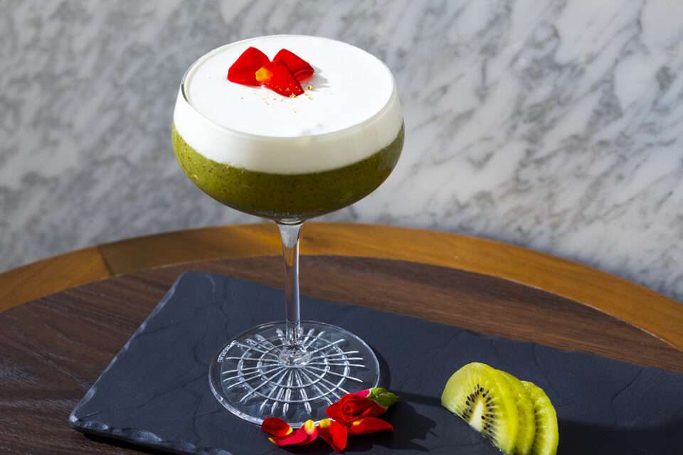フルーツとクリームの相性が良いラムベースのデザートカクテル。キウイとヨーグルトそれぞれの酸味と甘味が絶妙な個性豊かな一杯。