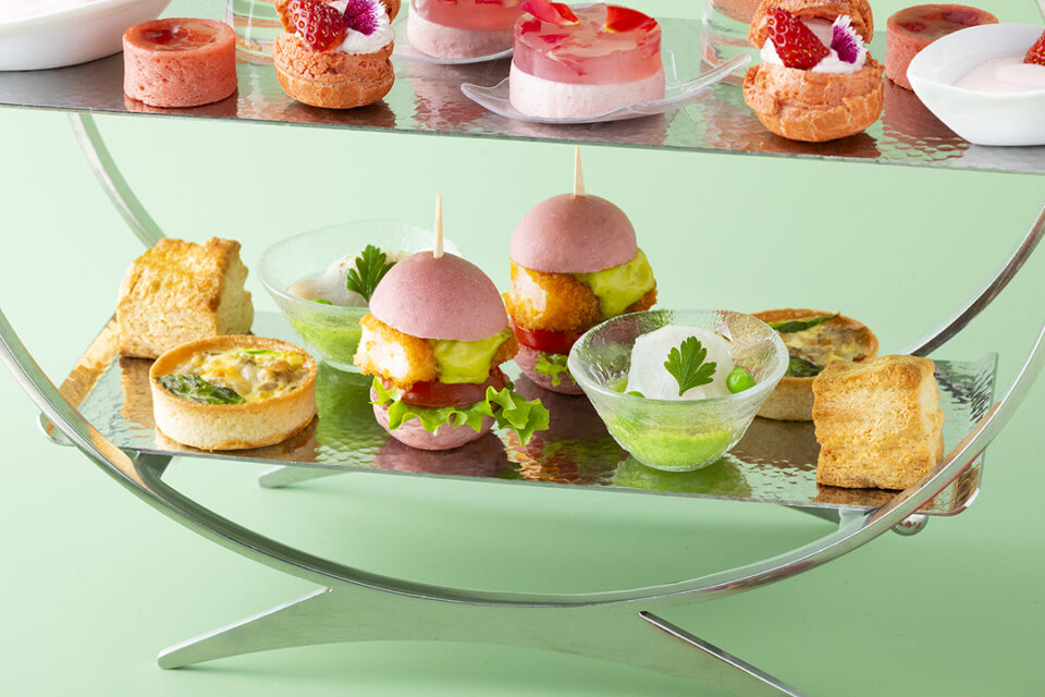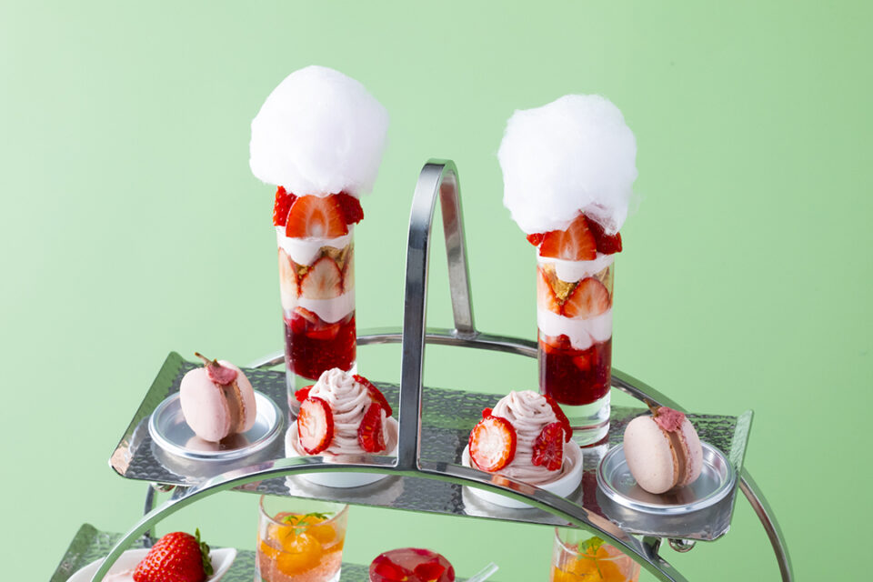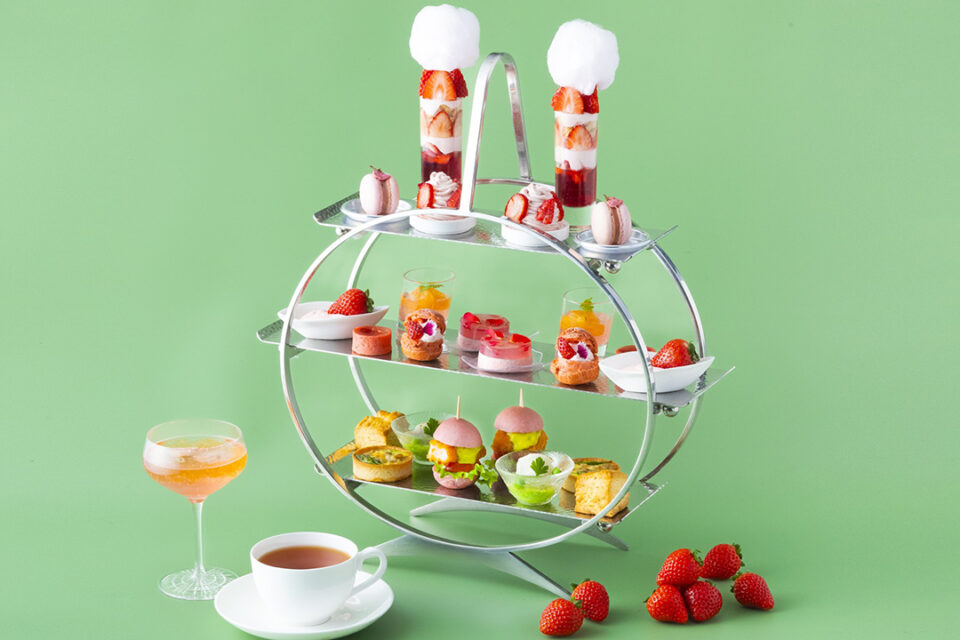 「ストロベリー・アフタヌーンティー」の第二弾。みずみずしく甘酸っぱいいちごに、桜などのピンク色の食材を散りばめ、視覚と味覚の両方で春の趣が楽しめるアフタヌーンティーで春を満喫!