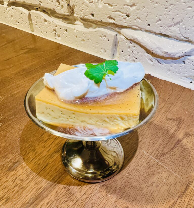 スケートリンクをイメージして作られた四角いプリン。白砂糖ではなく、甜菜糖を使用した、卵の風味が広がる固めの昭和プリンを食後のデザートやティータイムに!