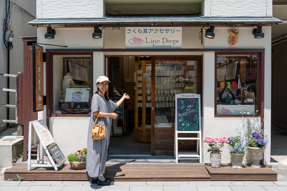 鎌倉の浜辺で採取した桜貝を用いて一つ一つ丁寧に手作りされたアイテムが並ぶ、国内唯一の桜貝アクセサリー専門店。