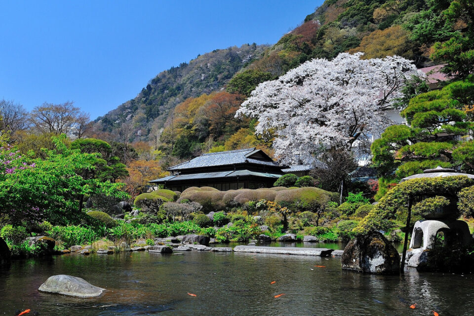 三菱財閥二代目総師・旧岩崎彌之助別邸の「池泉回遊式庭園」。大きな池が中心に配され、その周囲に園路を巡らせて、築山、池中に設けた小島、橋、名石などで各地の景勝などを再現。一年を通して様々な景色を見ることができ、特に春の桜と秋の紅葉は圧巻。約1万坪に及ぶ広大な敷地の中には、「旧岩崎家別邸(国登録有形文化財)」や茶室「「真光庵」があり、雄大な自然と歴史の浪漫が織り成す、至福の時間を愉しめる。