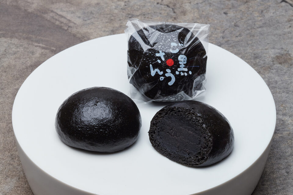 黒糖生地にさらに竹炭を重ね、黒々しっとりとした生地の中にはごまあんがたっぷり。