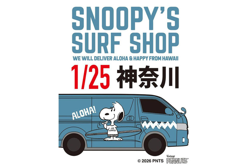 赤レンガ倉庫に隣接する商業施設「MARINE & WALK YOKOHAMA」に、2026 年1 月25日(日)PEANUTSオフィシャルサーフショップの「SNOOPY’S SURF SHOP」が移動販売車になってやってくる!