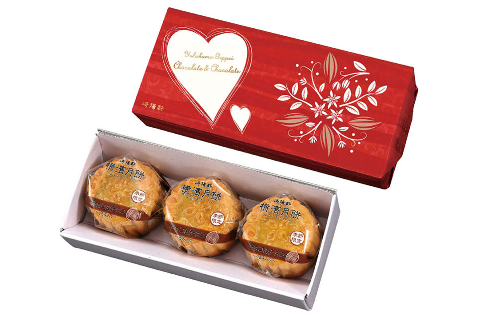 バレンタインパッケージ「横濱月餅 チョコ&チョコ ~くるみ入り~ 3個入」 製品内容