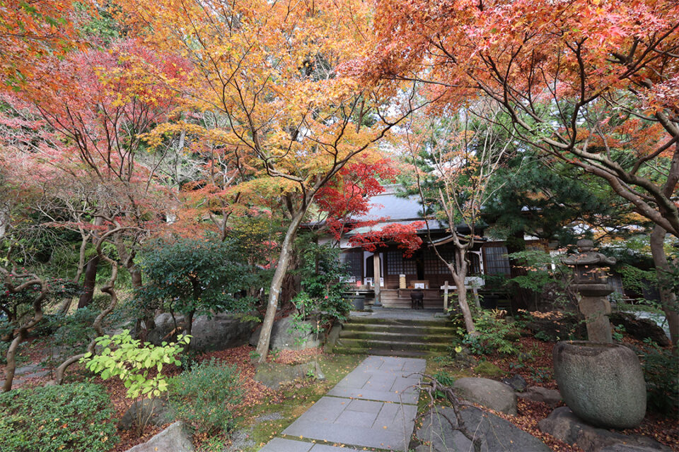 覚園寺では、2025年11月28日~12月10日まで「紅葉特別拝観」を実施。参拝時間を延長し、夕刻時にはライトアップも開催。美しい紅葉に包まれた境内と共に、明かりが灯された薬師堂に祀られる薬師三尊さまや十二神将さまに、日々の健康への感謝を込めてお参りしてみてはいかがでしょうか。