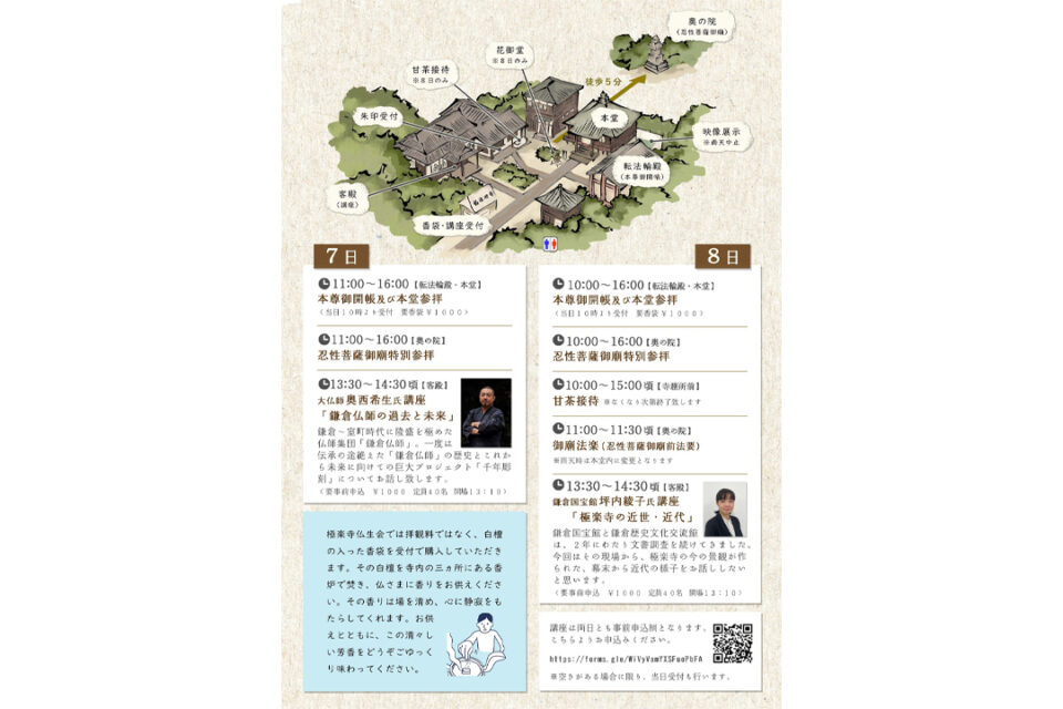 ほかにも、貧者や病人の救済に身命を惜しまぬ努力をされた極楽寺開山である忍性菩薩の御廟特別参拝や講座、8日には甘茶の振る舞いなども行われる。