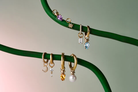 シンプルなフープピアスに付けてオリジナルのコーディネイトが楽しめるピアスチャームが登場。
