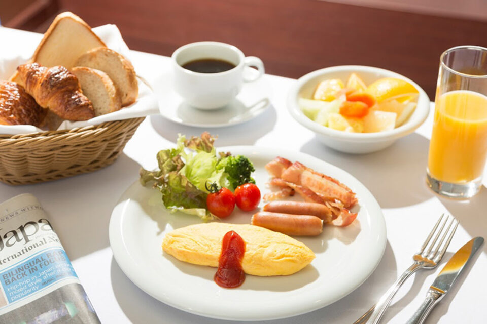 一日のスタートに活力をあたえるフレッシュな食材を使用した90種類以上の温・冷メニューが揃い、洋食はもちろん和食メニューも豊富に揃えたブッフェスタイルの朝食が味わえる。朝の目覚めに、香り高いコーヒーや、シェフが目の前で焼き上げるオムレツやパンケーキはいかが!