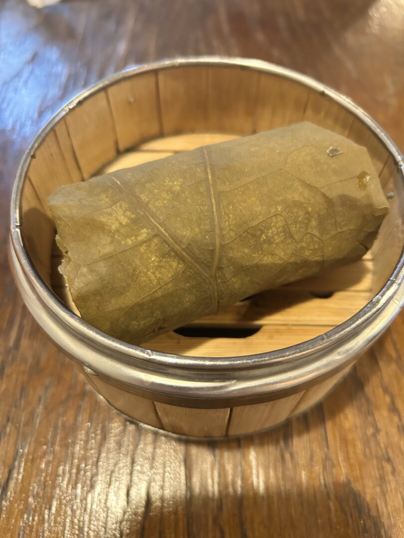 干しエビ・腸詰で炊いた中華おこわを蓮の葉で包んだ、香りに感動するおこわ。